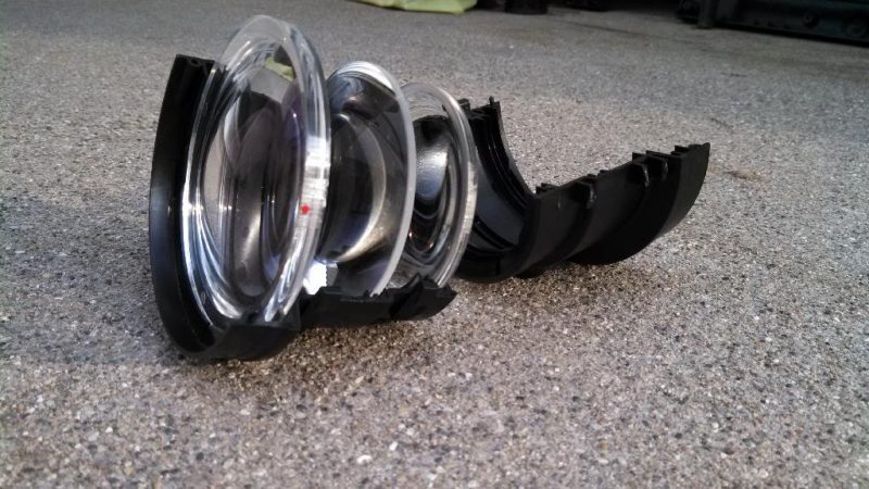 Located inside the television, behind the main viewing screen are a set of three black pipes, or posts which have a set of lenses. Once removed, these lens housing can be easily disassembled and the thick, high-end magnifying glass can be extrapolated from the units. Usually there are three. One for Red, Green, and Blue, however the lenses themselves are almost always clear. Normally the centre lens, as pictured below is the heaviest and thickest, and will provide maximum magnification.