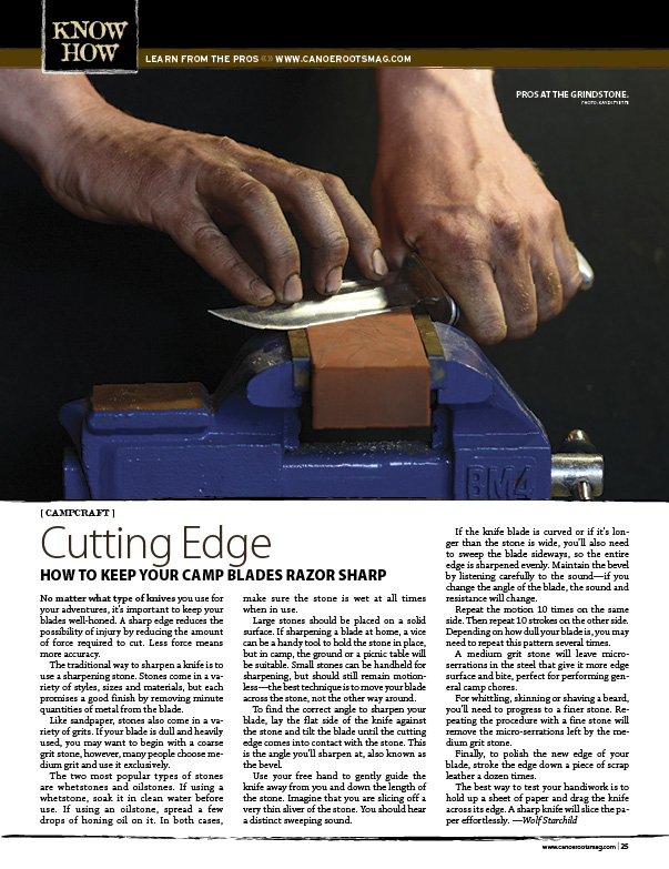 In September 2014 I had the privilege of being published in Family Camping and Canoe Roots Magazine. The article was about knife sharpening.