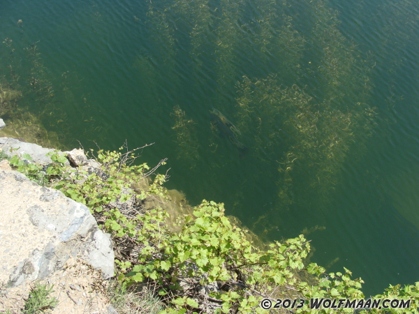 Peering into the clear waters of the quarry, I could see long kelp reaching for the surface, as well as many fish which were gazing up at us in wonderment. Large carp could be seen swimming in schools of 6 to 8 following along the edge.