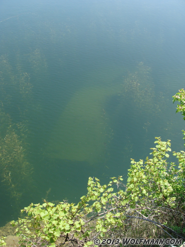 The quarry appeared shallow in most areas, and a few islands dotted the water. I recall from my dive here back in 2008 that there were a few very deep spots in the southern end of the quarry. Walking around the edge and peeing into the water, I was surprised to see several sunken cars still in the quarry. Several upright, and one inverted laying on the bottom, surrounded by kelp.