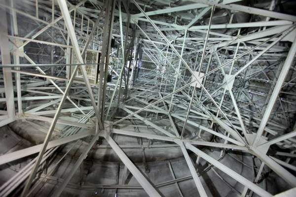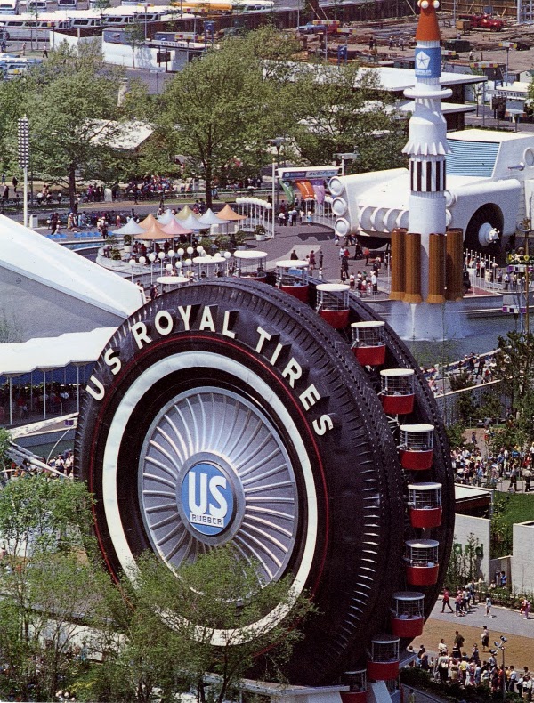 During the fair the giant tire branded with the U.S. Royal Tires name held 24 gondolas carrying four people each. The gondolas were powered by a 100 hp motor. The interior of the tire is some 11,202 square metres and if the tire to actually fit on a giant truck, the truck would be over 60 metres high!