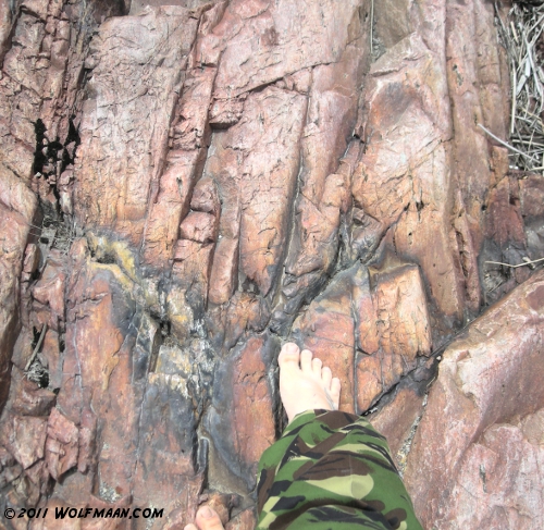 The trail starts by climbing a very large pink coloured rock, which has the trailhead sign on the top. The sign advises that this trail is challenging and will take about 3 hours to complete. The sign also advises you to be prepared for hiking by carrying a backpack full of supplies.